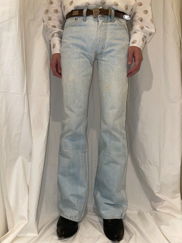 ウエスト···平置き35cm 股上 ···24cm 股下 ···82cm 渡り幅···25.5cm 膝幅 ···19.5cm 裾幅 ···24.5cm ※素人採寸となる為多少の誤差があります、予めご了承下さい 着用モデル···170cm細身体型 70年代頃のベルボトムになります。 ヴィンテージデニム特有の風合いが楽しめる一着です。 Levi's646のようなシルエットで、流れるようなラインがとても魅力的です。 少しサビ汚れのようなシミはありますが気にならない程度です。 70sファッションや古着好きな方、この機会に是非いかがでしょうか。 ※used商品の為神経質な方は購入をお控えください #levis684 #levis784 #levis #リーバイス #684 #784 #ベルボトム #フレアパンツ #フレアデニム #70s #70年代 #70年代ファッション #昭和レトロ #レトロ #ヴィンテージ #used #古着